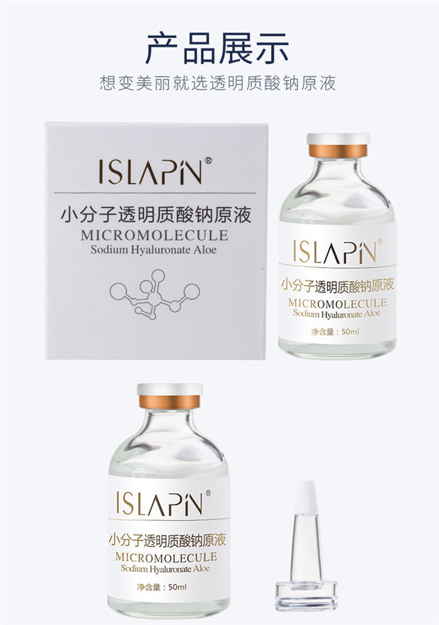 透明質酸鈉原液,性質溫和,滲透力強,不含油份,亦不會閉塞毛孔,導致-或暗瘡出現.能快速直接滲透肌膚底層,并在此層中形成水合現象,達到皮膚最大水合狀況.因而對極干性或嚴重缺水問題皮膚,能有效提升底層細胞的含水量,長效釋放養份,為肌膚形成保護膜,將兩滴玻尿酸放在手心,加上適量化妝水混合后涂抹在臉上, 然后再涂上富含油脂的保養品,能使皮膚長時間保持濕潤,促進透明質酸的數量,提高角質內層之間的聚合力,使表皮平整、均衡、亮澤.